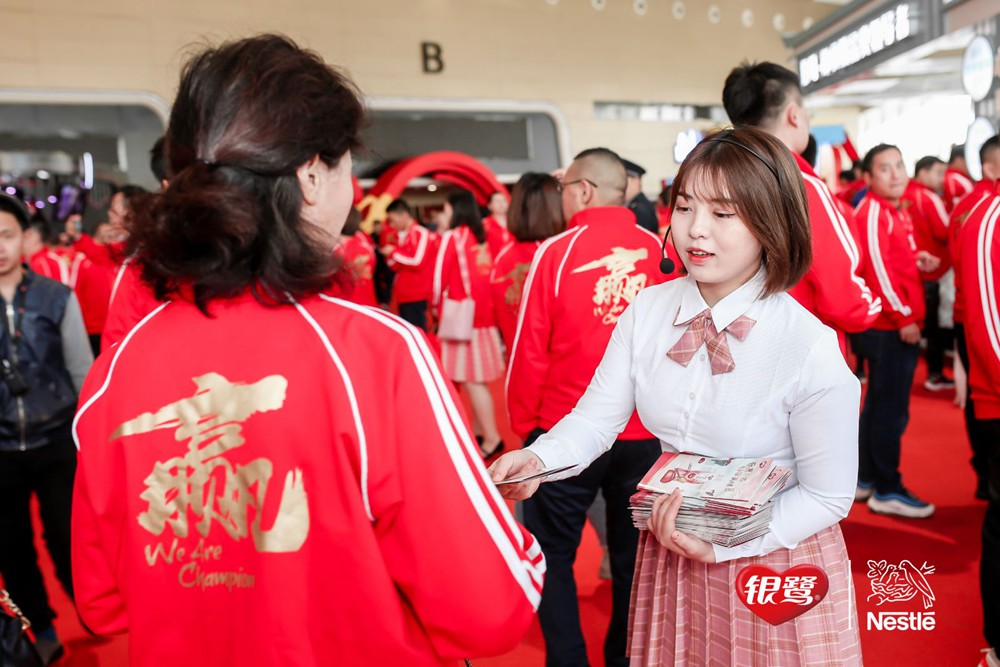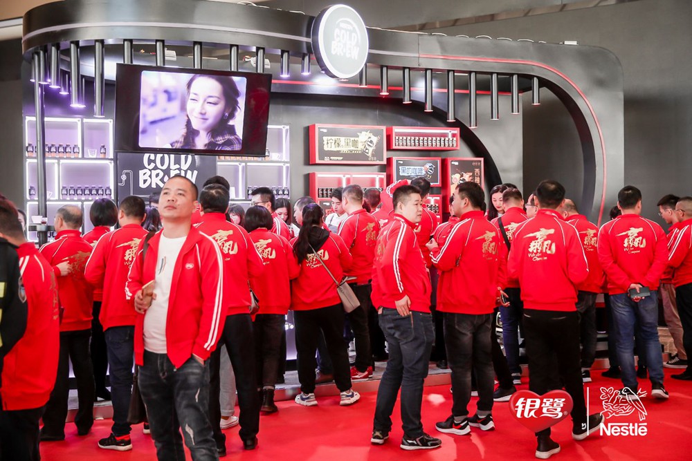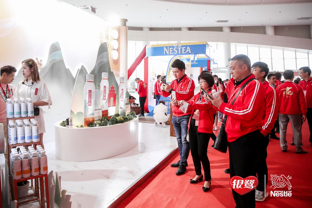 大會正式開始前,經銷商們紛紛抵達現場。不同于往年,眾多新穎時尚的產品堆頭陳列:與頤和園IP合作的臻養粥古風禮盒,雀巢咖啡世界咖啡系列等等新品,吸引經銷商們和業務團隊競相拍照、品嘗產品,現場氛圍火爆。本次大會最引人注目的是火紅色經銷商服上的“贏”字,展現了此次大會的信心與決心。