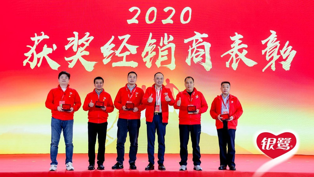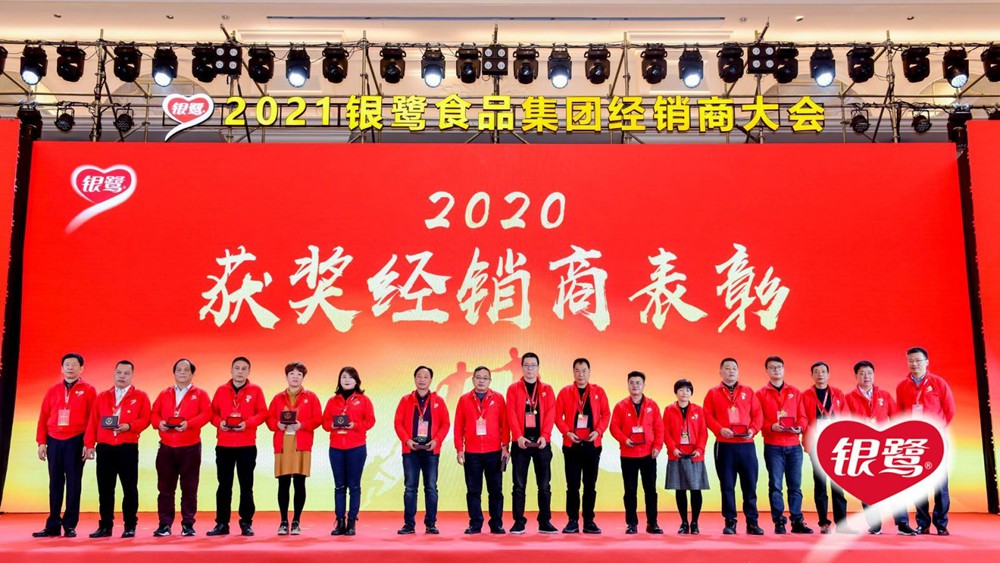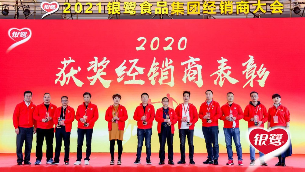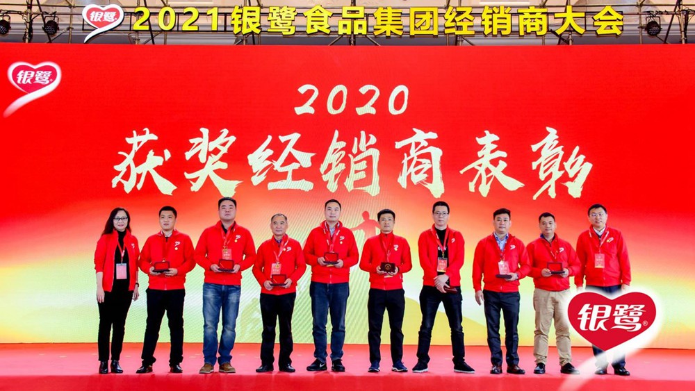 會上,公司領(lǐng)導(dǎo)為優(yōu)秀的經(jīng)銷商代表一一頒獎,并合影留念。銀鷺食品集團(tuán)2020年經(jīng)銷商大會在熱烈的氛圍中圓滿落幕。