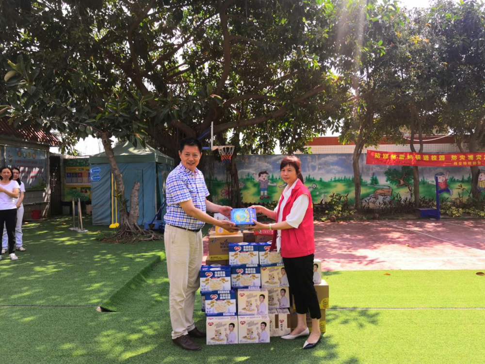 在互動交流過后,林書記代表公司向學校捐贈了雀巢茶萃、好粥道和牛奶花生等產品和科普書籍,向小朋友表達節日最美好的祝福。
